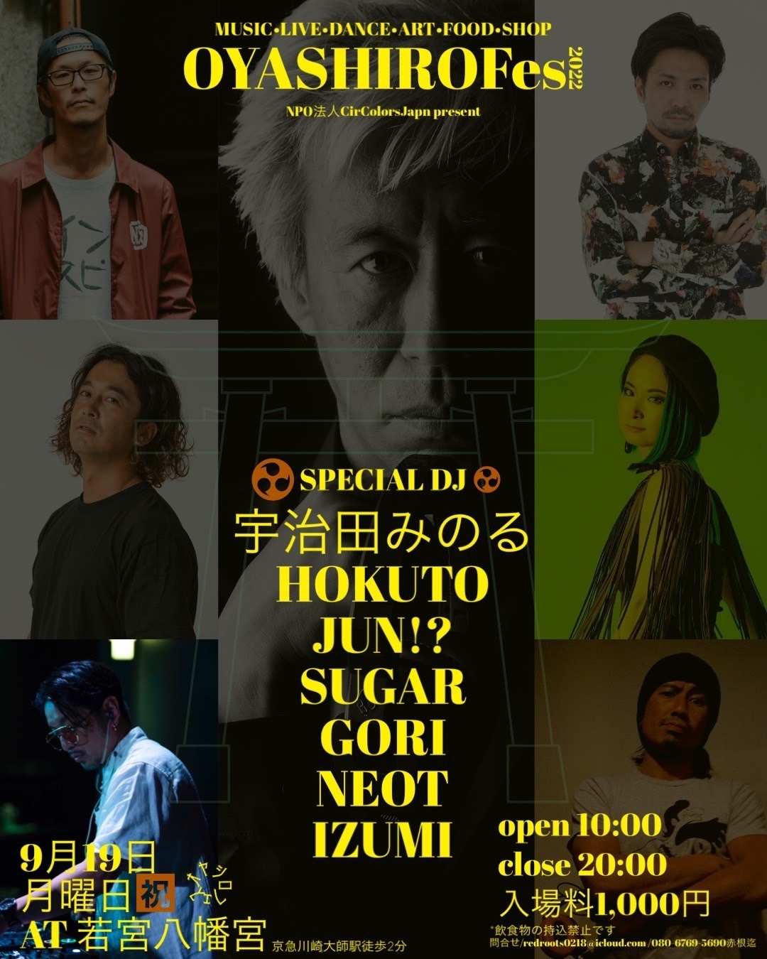 NPO法人CirColorsJapanは、神社の境内という神聖な場をクラブ化し、大人から子供まで広い世代が楽しめるイベント『OYASHIROFes2022(オヤシロフェス2022)』を2022年9月19日に神奈川県川崎市・若宮八幡宮で開催いたします。