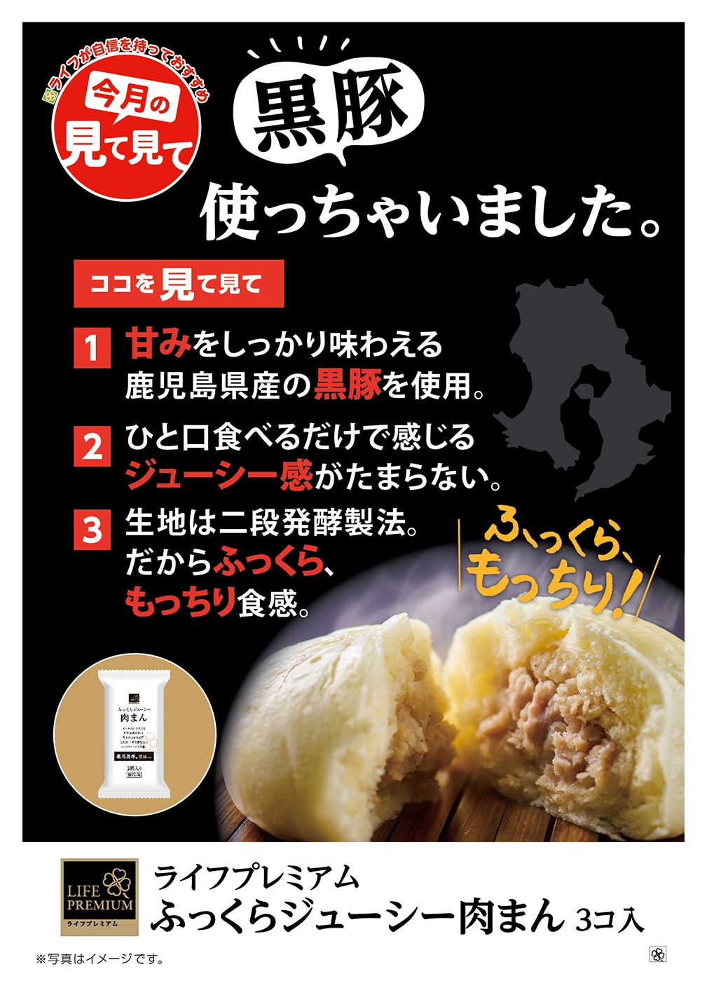 【近畿圏ライフ】2023年も進化が止まらない冷凍食品にライフのプライベートブランドから“また”新商品が誕生!鹿児島県産黒豚を使用した「ライフプレミアム ふっくらジューシー肉まん」を新発売