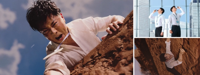 今回のWebCMでは、ケインさんは過去出演いただいたCMの舞台となった自然の崖ではなく、ビジネスシーンのクライシス(危機的状況)を立ちはだかる「崖」になぞらえて、そこに立ち向かう会社員を演じます。さらに、同時公開となるシリーズ動画「従業員コスギ」篇では、配達員、建設作業員、IT社員など、様々な職業になりきり、共感を呼ぶ業務時間の「疲れあるある」に挑戦します。働く現場で、誰もが経験するシーンを演じるケインさんが、心から叫ぶ“ファイト イッパーツ!”は必見です。