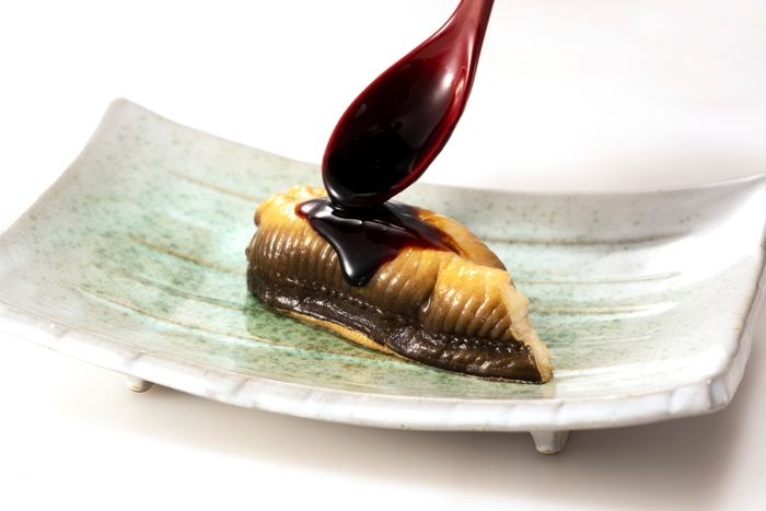 江戸前鮨のネタとして名高い煮穴子。開いた穴子の中骨から出汁を取った自家製のツメで、甘くやさしくふっくらと仕上げています。