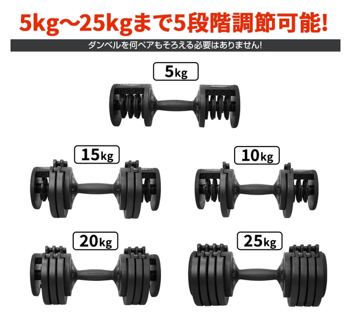 ワンタッチで自由自在「グリップ型可変式ダンベル25kg」が新登場
