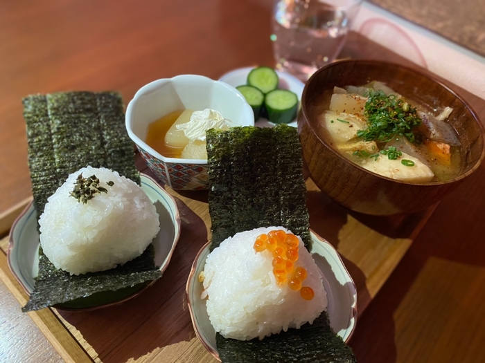 ランチタイムは板前がにぎる創作おにぎりや具沢山の豚汁。割烹料理勤務の祖母「ときいばあ」伝承の具材や自家製のおかかを始め、創作具材を新潟のお米で包み込みます。テイクアウトもございます。