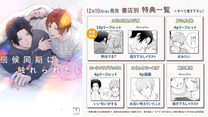 株式会社リイド社(所在地:東京都杉並区、代表取締役社長:齊藤哲人)は2024年12月10日(火曜日)に、『居候同期に触れられたい』(ツノナツメ)を刊行いたします。