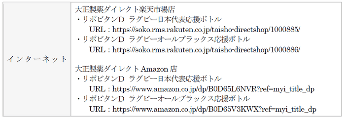 大正製薬株式会社[本社:東京都豊島区 社長:上原 茂](以下、当社)は、リポビタンDの限定ボトル「リポビタンD ラグビー日本代表応援ボトル」と「リポビタンD ラグビーオールブラックス応援ボトル」を、当社オンラインショップ“大正製薬ダイレクト”等にて、6月14日(金)より数量限定発売いたします。