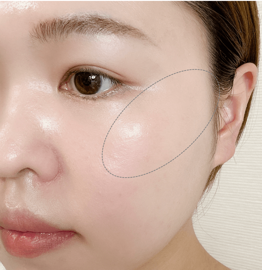 頬骨の高い位置からこめかみに向かって王道塗り。
