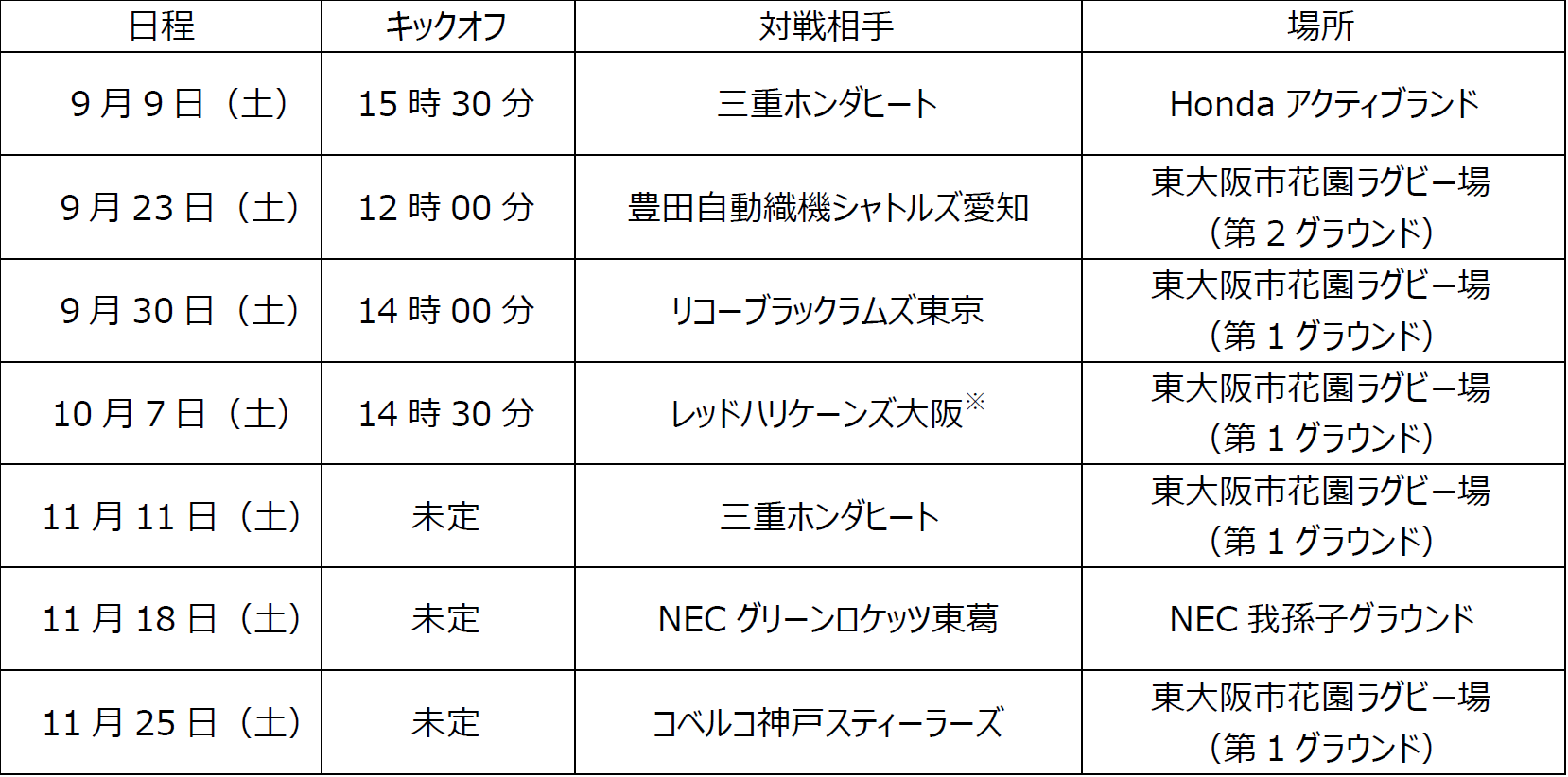 ※10月7日(土)のレッドハリケーンズ大阪戦は、マスターズ花園スペシャルマッチとして開催します。