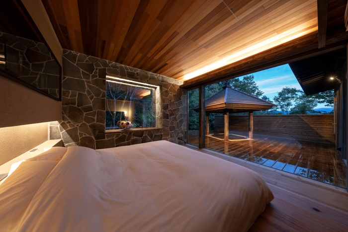 深い森に抱かれた、静寂の隠れ家。ふたりだけのプライベート空間で、木々に囲まれ、誰にも邪魔されず、心ゆくまで贅沢な時間をお過ごしいただけます。