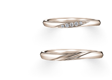 寄り添い羽を休める仲睦まじい蝶々のような、繊細な美しさを持つマリッジリングです。アイプリモ独自の「着け心地メソッド」により、着けていることを忘れるほどの軽さと、まるで指の一部のようなストレスフリーのフィット感を実現。細身でありながら、一生のリングにふさわしい耐久性も備えています。斜めに施されたカッティングが2枚の羽を合わせて佇む蝶の姿と重なり、シンプルな中にもストーリー性を秘めた他では出会えないリングです。