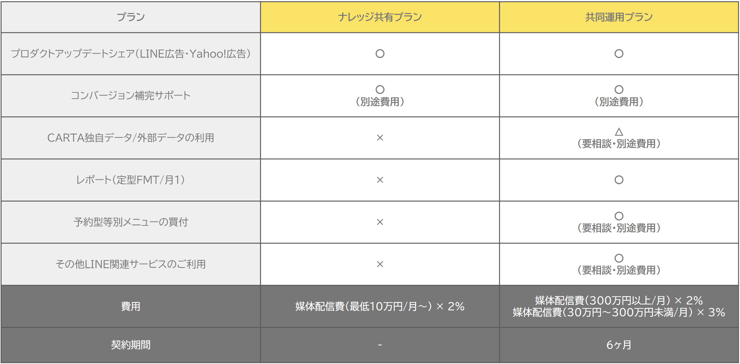 どちらか1媒体のみのプランの契約でも、プロダクトアップデートに関してはLINE広告・Yahoo!広告両方の情報をご提供いたします。