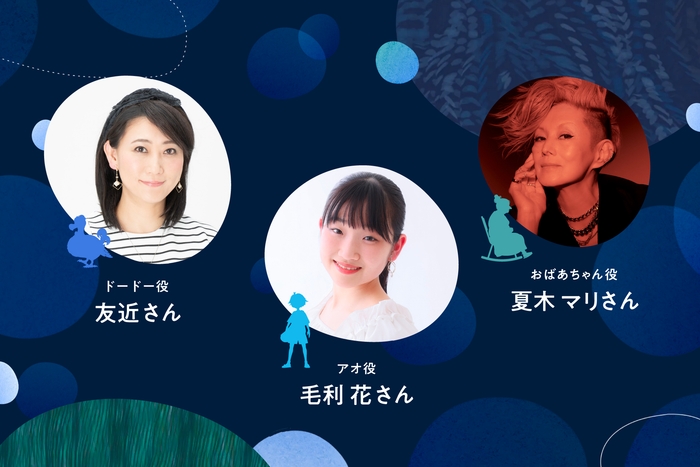 アオが歌う伝承歌(テーマソング)を初めて聴いたとき、どこか懐かしく感じたのと同時に、不思議な世界観に強く惹かれ、この歌をどうしても自分の声で 歌いたいと思いました。想いが叶って役をいただけたことが本当に幸せです。アオの元気で好奇心旺盛なところが10歳の頃の私にそっくりだったので、その頃の自分を思い出しながら演じました。技術はもちろん、たくさんの方の熱意と優しさが詰まったとても素敵な作品です。水や空気、地球にもう一度目を向けるきっかけができれば、私たちの未来はより良いものになると思います。ぜひ会場でご覧ください。