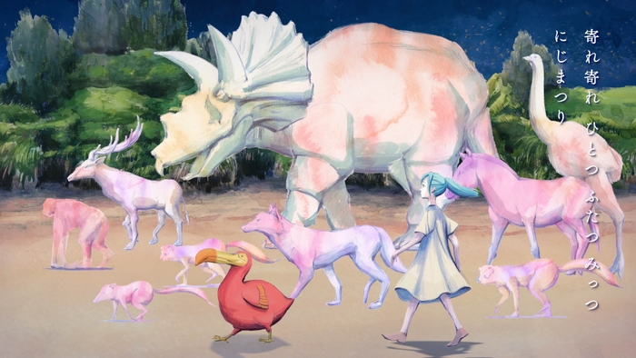 МVのイラストレーションは、今回のショーで大事にしている生命(いのち)や自然を、やさしく素敵に描ける方として、数多くの有名アーティストとのコラボレーション作品を手掛ける映像作家の加藤 隆(りゅう)さんが担当します。物語の“エピソードゼロ”として、主人公「アオ」が生まれるずっと前の島に起きた、夜の虹にまつわる逸話を描き、伝承歌と物語を結びつけます。