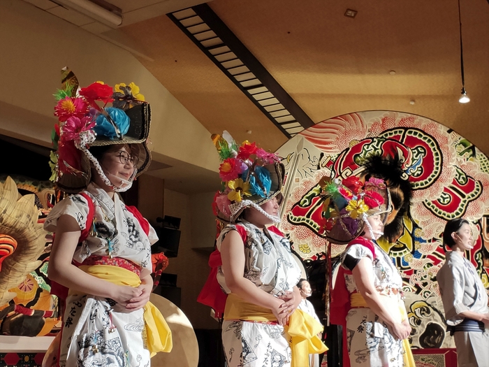 お客様に祭りの熱気を届けるため、宿で働くスタッフでありながら楽器の演奏技術を一から習得しました。その技術を継承し、みちのく祭りやのショーは15年間公演し続けてきました。ショーは青森の4つの祭りを一度に披露できるように進化していき、ねぶたの山車運行や跳人(はねと)(*3)体験も実施してきました。また、地域のお囃子団体との共演ショー、展示する山車のご協力など、地域の方々の支えもありました。改装後も、スタッフによる演奏と演出で青森の祭りを目一杯体験いただけるよう取り組んでいきます。