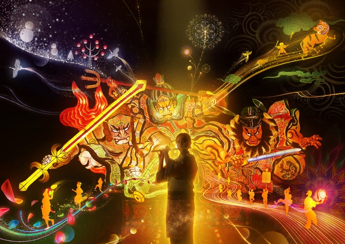 ショーの演出は、青森の人々が寒さ厳しい冬を耐え、春の訪れを喜び、溜め込んだエネルギーを夏に一気に爆発させる想いをストーリーテリング(*2)で行います。また、青森の四季、祭りへの想い、祭りの文化を表現した映像が流れることで、お客様も青森の人々の気持ちに共感でき、より祭りの世界に浸れます。