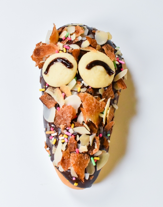 チョコ味パンのサクサクデニッシュ生地をトッピングした可愛いミノムシパンです。
