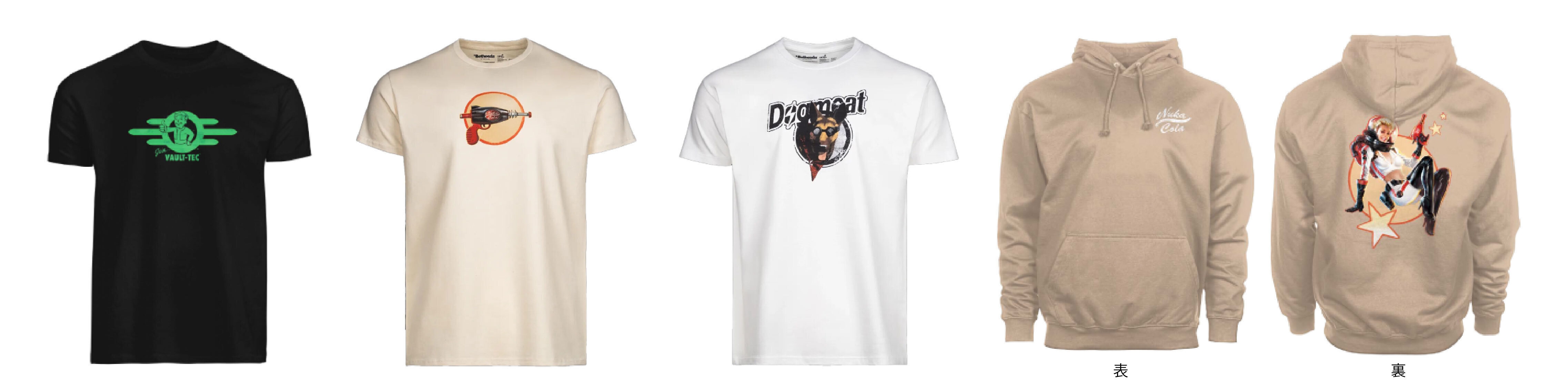 マスコットキャラクターの「ボルトボーイ」や、ゲーム内で頼もしい仲間として登場する「DOGMEAT」や「NUKAシリーズ」など様々な人気デザインのアパレルを展開。