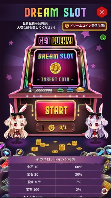 毎日一回もらえるドリームコインを使用して、スロットを回すことができます。