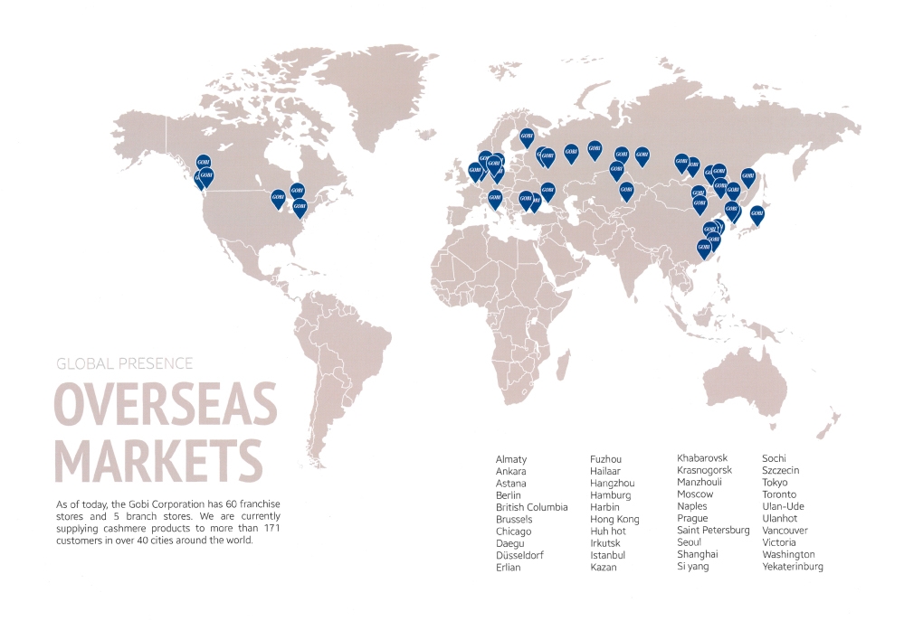 近年、インターネット上では中国製の安価なカシミヤ製品が出回っていますが、それらとは比べものにならない上品なツヤと極上の肌触り。デパートや高級セレクトショップで扱っている高価なカシミヤ製品と比べても同レベルです。それはそのはず。ヨーロッパやアメリカを中心に世界のカシミヤブランドへカシミヤ原毛を提供しているのは、この「GOBI CASHMERE(ゴビカシミヤ)」なのです。(全てのカシミヤブランドへ提供しているわけではありません)