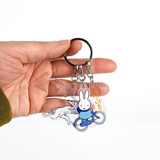 自転車に乗るミッフィーや、鳥獣戯画のうさぎのアクリルプレートがキーホルダーになりました。