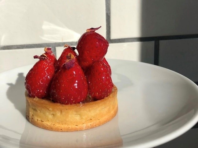 ジャスミンのシロップを染み込ませたタルト生地の上に、カスタードクリームとフレッシュのいちごを贅沢にのせました。艶出しのナパージュにもバニラを使用しており、細部までこだわりました。