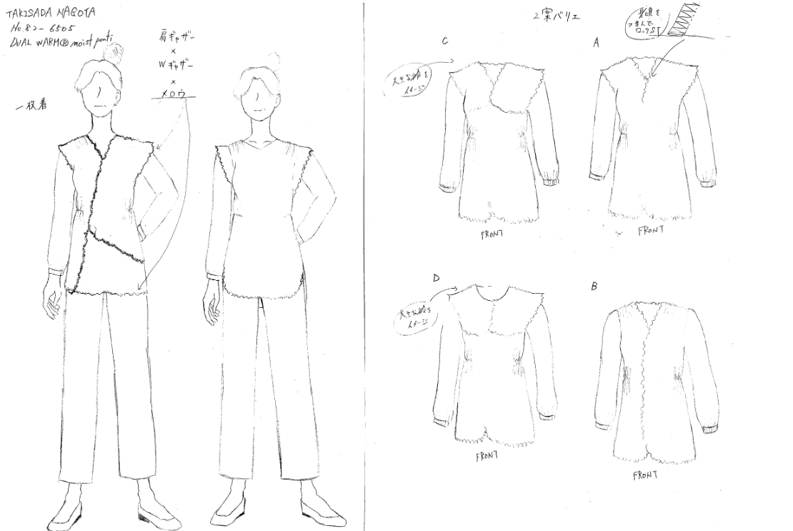 keiko氏からシニア特有の悩みや体形の変化などのアドバイスを受けた学生がデザインの草案を起案。