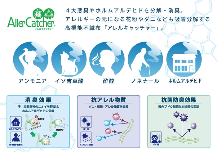 特徴2:高機能不織布「アレルキャッチャー」で花粉・ダニなどを吸着して分解