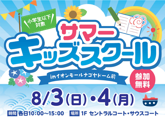 ・小学生以下を対象に、名城大学の髙橋ゼミと名古屋大学の土井ゼミの学生が、午前は夏休みの宿題(学習ドリルやワークなど英数国理社の5教科)サポートを、午後は自由研究に役立つワークショップを無料で開催。