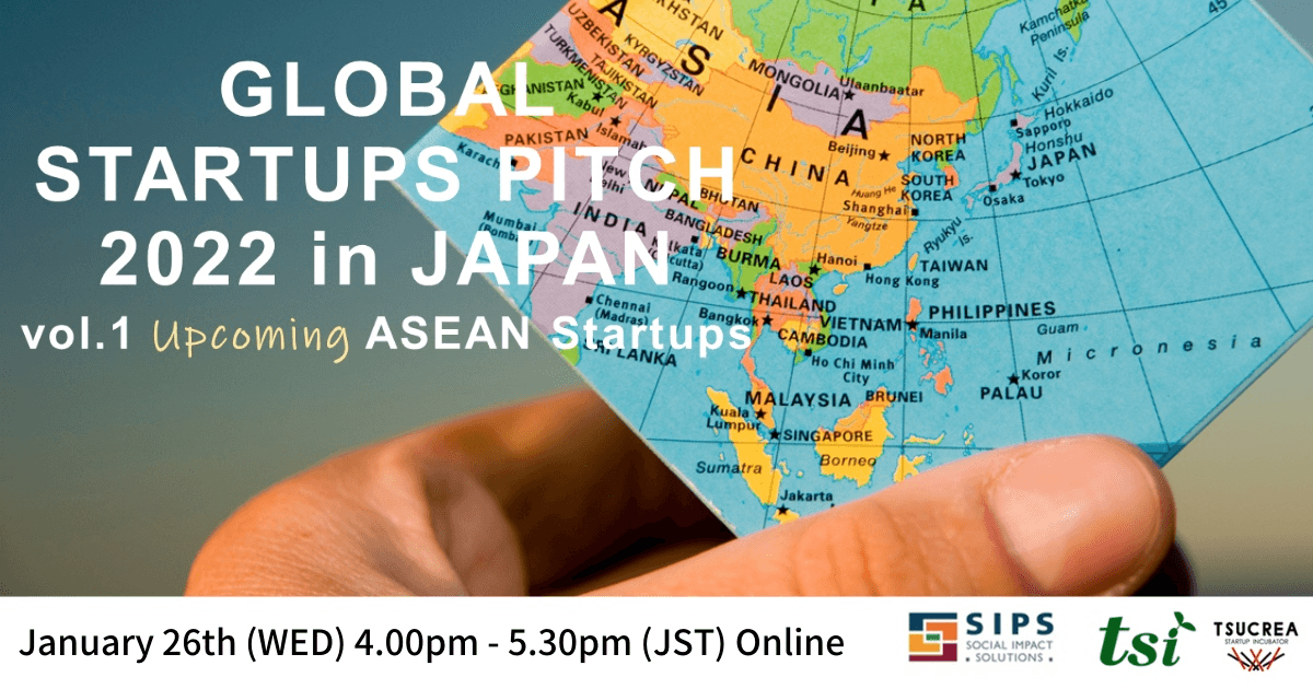 Tsucrea Co., Ltd. (HQ: Chiyoda-ku, Tokyo), Technology Seed Incubation Co., Ltd. (HQ: Kyoto City, Kyoto) are organizing the online pitch event – “Global Startups Pitch 2022 in Japan vol. 1 ASEAN” on January 26th 2022 (Wednesday).