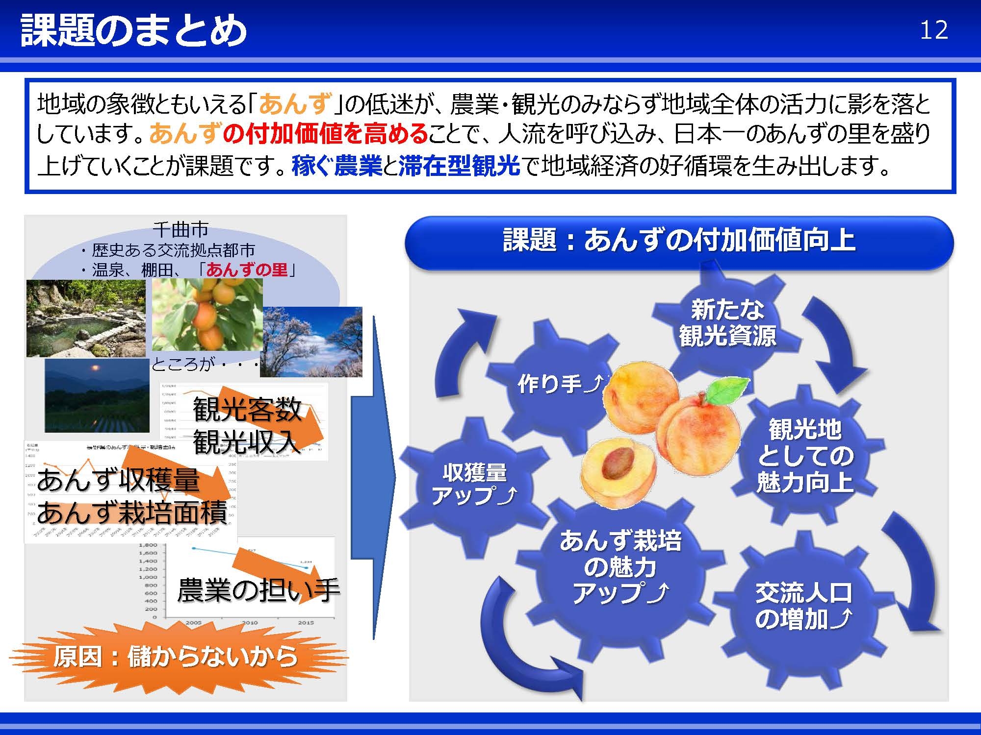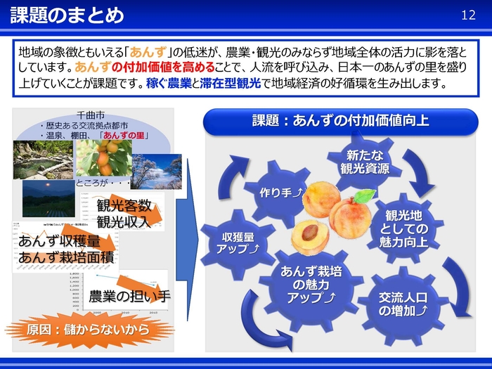 未利用資源であった千曲市のあんずの種を活用し、杏仁オイルを観光資源としても役立てるというアイデアは、大学生以上一般の部においてみごと地方創生担当大臣賞を受賞しました。