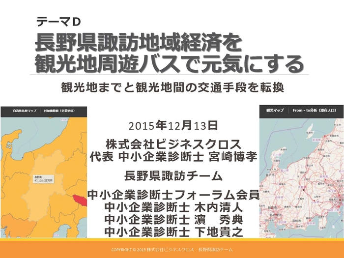 木内(株式会社ビジネスクロス 中小企業診断士)「今回で7回目の応募です。第1回のときは長野県の諏訪湖周辺を周遊する観光バスについてのアイデアを出し、優秀賞をいただきました。」