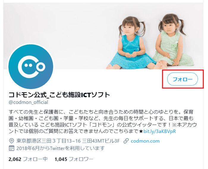 ▼STEP1:コドモンの公式Twitterアカウントをフォローする