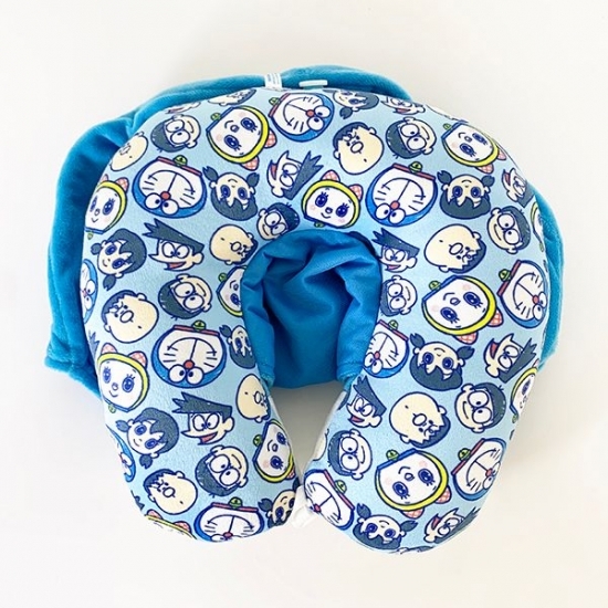 ドラえもんの顔がフードになっていて、脚の部分がピローに♪