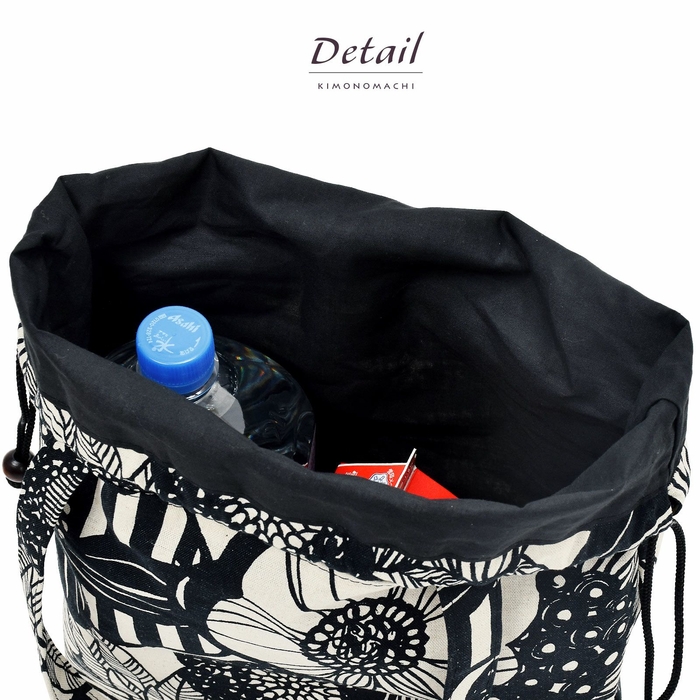 巾着部分を中に落とし込むとことによって、トートバッグとしてもご使用いただけます。いつもは巾着トートバッグとして、たまにはトートバッグとして。