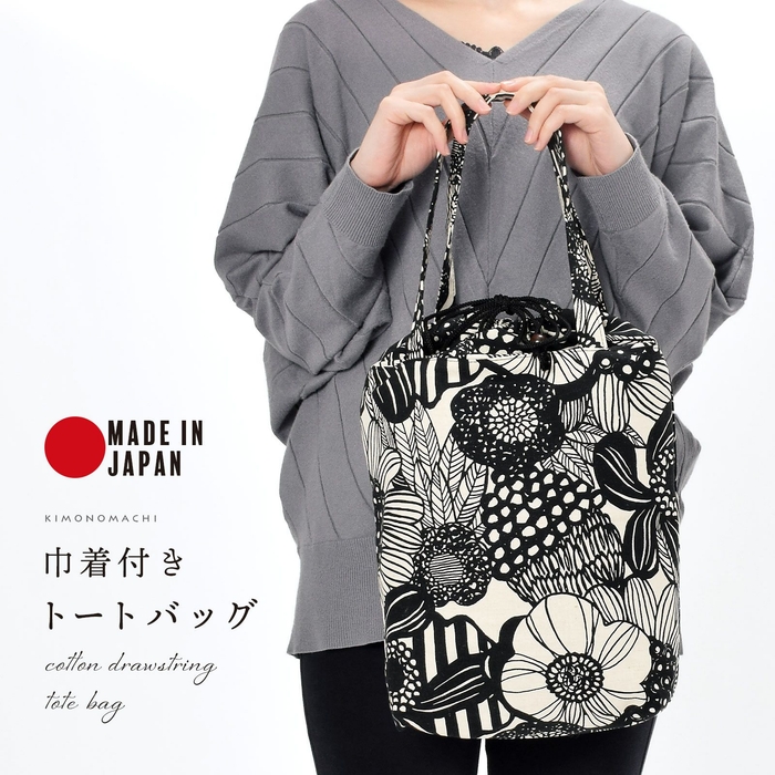 生地も縫製もしっかりと作られているので、お出掛けバッグとしてだけでなく、エコバッグとしても大活躍。巾着が付いていることで、買った食材が見えてしまうのも防いでくれます。