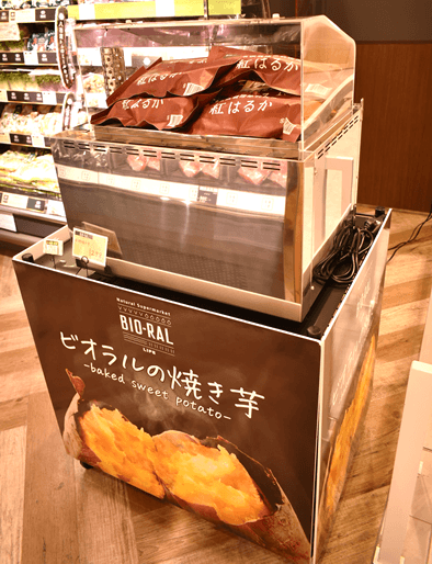 有機さつまいもを使用した焼き芋も展開。店内で焼き上げます。