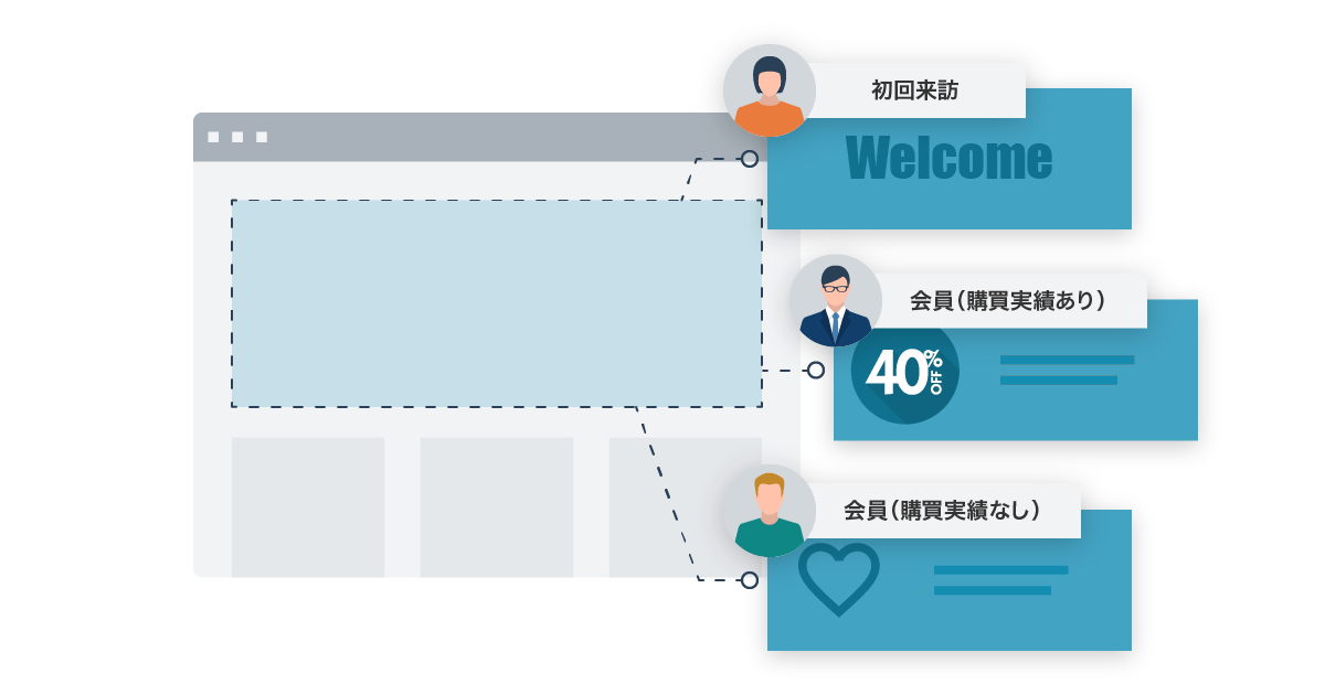 ・会員制のECサイトで、新規ユーザーには入会特典を訴求するバナーを、リピーターには過去閲覧していたページに関連する特集を訴求するバナーを配信する