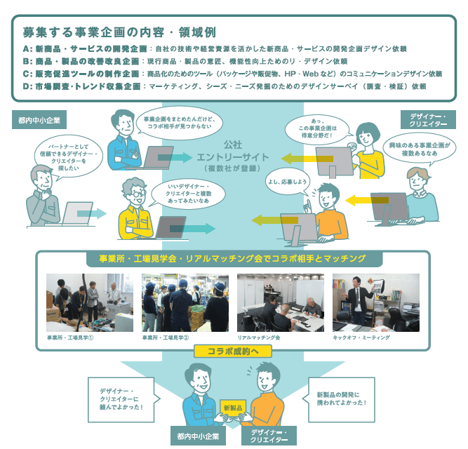 都内中小企業の事業企画に対して、 デザイナー・クリエイターとの出会い・コラボの場を提供! 令和3年度デザインコラボ「リアルマッチング」参加企業を募集