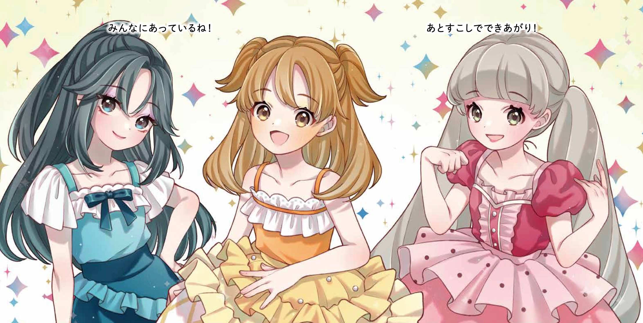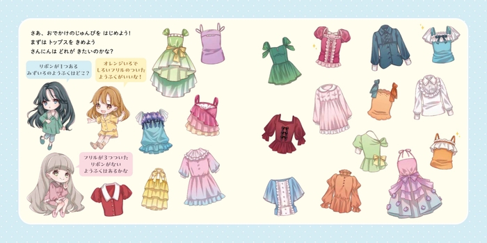 3人が着たいお洋服をいっしょにさがす、おしゃれ×探し絵BOOKです。