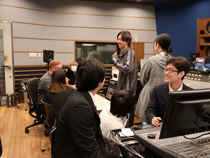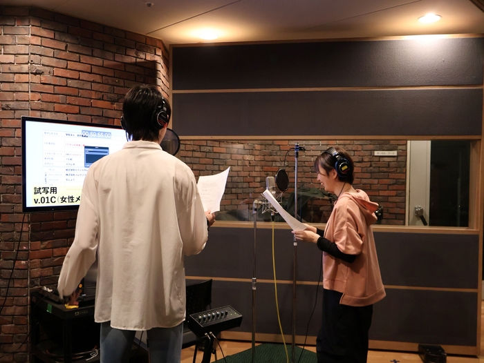 今回のCM制作は、在学中から実践的な社会経験を重視するテクノスカレッジならではの学修の一環でもあり、ナレーションを声優・演劇科の学生が担い、その録音と調整を音響芸術科の学生が担い、学内のレコーディングスタジオにて収録を行いました。