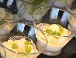 10、「静岡産喜水梨のコンポート丹那牛乳を使ったパンナコッタと一緒に 」
