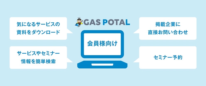 会員は、サービスやセミナーの検索に加え、GAS POTAL上から直接資料をダウンロードできます。さらに、企業への問い合わせやセミナーの予約も可能です。
