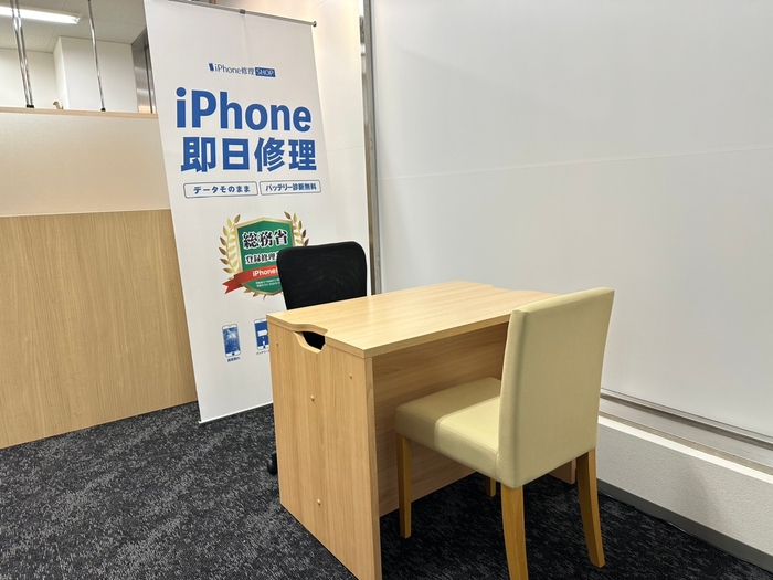 広々とした店内はゆったりとお待ちいただける環境を整えており、快適にお過ごしいただけるのも当店の特長です。また、館内には生鮮食品を取り扱うスーパーや、ケンタッキー・フライド・チキン、ミスタードーナツといった飲食店、クリーニング店、ジムなども併設されており、修理の待ち時間も飽きることなく過ごしていただけます。充実した環境で、安心して修理サービスをご利用いただけます!