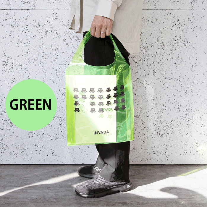 INVADAらしい賑やかなムードのグリーンと、シンプルでかわいいクリアカラーの2種類をご用意しました!(色はランダムでお送りします。)