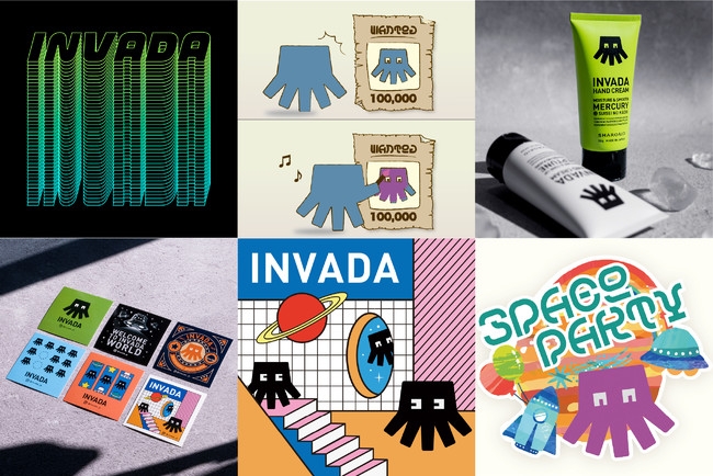 宇宙をテーマにしたハンドケアブランド「INVADA」は、その名の由来となるInvader(侵略者)が侵略していくかのように、商品に包含した美容成分が肌に浸透し、効果を発揮していくというメッセージを込めており、オリジナルキャラクターの “インベーダ” は、ハンドケアプロダクトのシンボルマークに相応しく「手の形」をモチーフにした宇宙生命体として、さまざまな商品のアイコンとなるように開発されています。