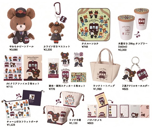 阪急電鉄の実際の制服をイメージしたワンピースを着たジャッキーのぬいぐるみやマスコット、初夏の行楽にぴったりなランチトートバッグやランチ巾着など、オリジナルデザインのコラボレーショングッズ(全11商品)を発売します。
