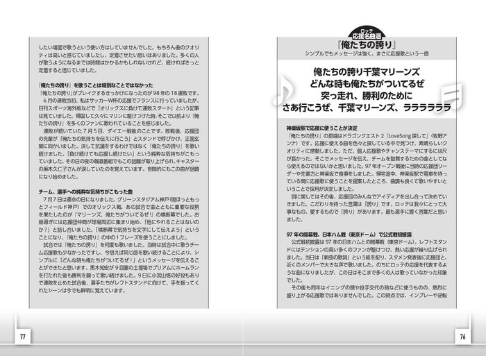 応援はレガシーとして生き続ける/応援は生き物、変化期へ突入/選手のための熱狂と共感/野球と他競技の応援の違い/応援スタイルを定着させるのに必要なこと/応援にいかせる楽器術…など