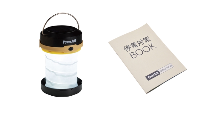 ライト/ランタンの2種類の形で使用できる簡易LEDランタンを同梱。移動中の明かりとして活躍するライトとしても、一箇所に留まって照らす際に活躍するランタンとしても利用可能。さらに防災時の備えとして、提携ブランドであるDefend Future監修の停電対策BOOKも同梱。防災用品としての利便性が向上します。