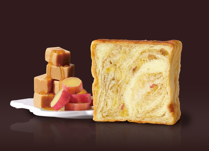 メープルとキャラメルの甘く懐かしい風味のデニッシュ生地に、優しい甘さの国産金時芋の甘露煮を織り込んだ、この冬登場の新商品。