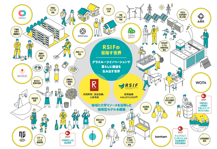 今回発行するファンドレポートは、RSIFの理念や立命館起業・事業化推進室の紹介、月額制で全国住み放題の多拠点居住プラットフォーム「ADDress」を展開する株式会社アドレスや、独自の微生物テクノロジーを使用した廃棄物処理技術を提供する株式会社komhamを含む9つの企業の取り組みなどをご紹介しています。