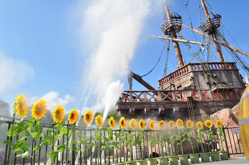 お子さまに大人気の水遊び場「チャプチャプラグーン」に大量の水が出るびしょ濡れアイテムを設置し、「ジャブジャブラグーン」としてパワーアップ。水が空高く吹き上がる「スプラッシュ・ウォーターキャノン」や写真映えする「ひまわりミスト」などが登場します。