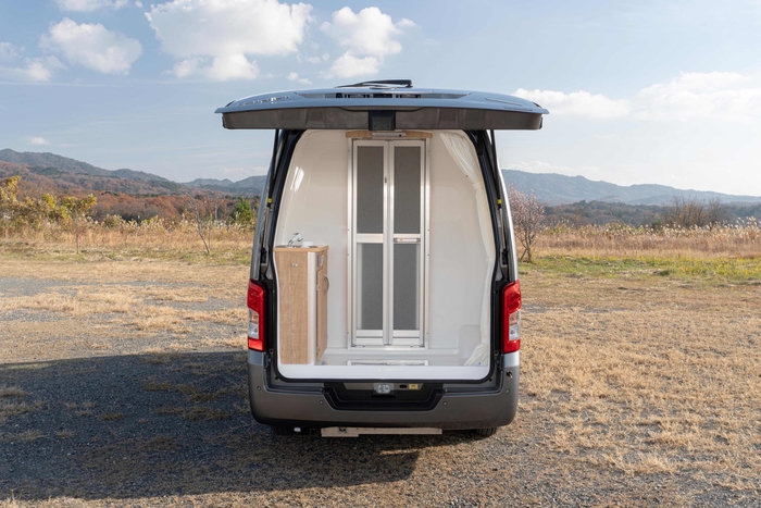 キャンピングカーが緊急時の避難場所として注目されており、外観をバン形状のまま、シャワールームやエアコンを備える当社モデルの需要が高まっています。